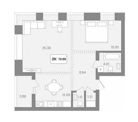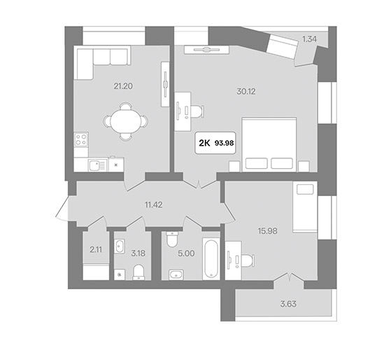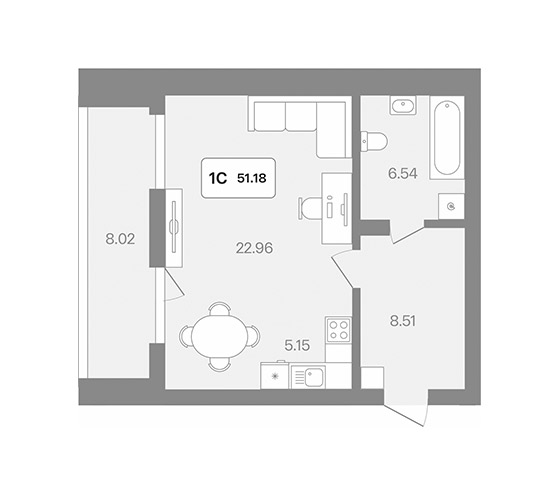 • Увеличенные оконные проёмы и высокие потолки от 3,3 м.