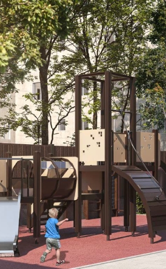 Место для отдыха и общения, Workout-комплексы и детская игровая площадка - гармонично дополняют зеленые островки клумб и декоративные деревья.