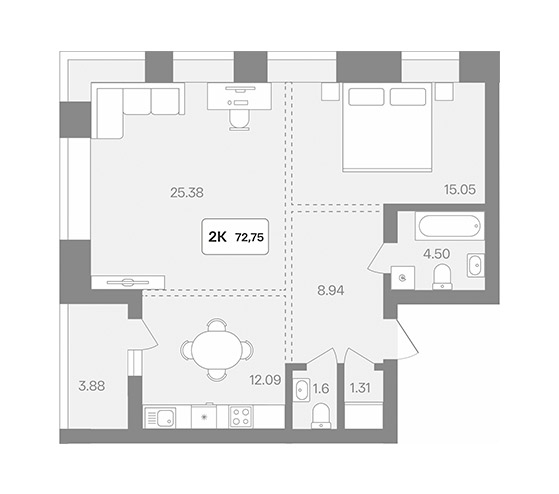 • Всего 87 квартир от 43,1 до 136, 2 кв. м.